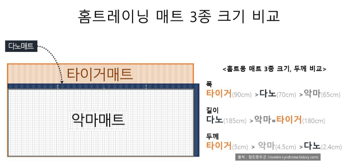 닌텐도 스위치와 링피트 어드벤처 게임팩을 선물받았습니다. 코로나로 운동 못한다는 변명을 할 수 없게 되었습니다. 링피트 다이어트 성공한 사례를 보니 저도 뭔가 할 수 있을 것만 같습니다. 직접 해보니 운동이 됩니다. 하지만 뛰고 또 뛰고, 맨바닥에서 하려니 발, 허리, 온 몸이 다 아픈 느낌입니다. 하면 할수록 전용 매트가 꼭 있어야겠습니다. #링피트 매트 #홈트레이닝매트 #홈트매트 등으로 검색해보니 악마매트, 다노매트, 타이거매트 3종이 가장 눈에 많이 띄어 셋 중 하나를 사기로 했습니다. 물건 하나 살 때 비교만 하다가 결정 못하는 햄릿증후군 말기인 저는 아래에서 비교할 기준으로 매트를 결정해보았습니다.